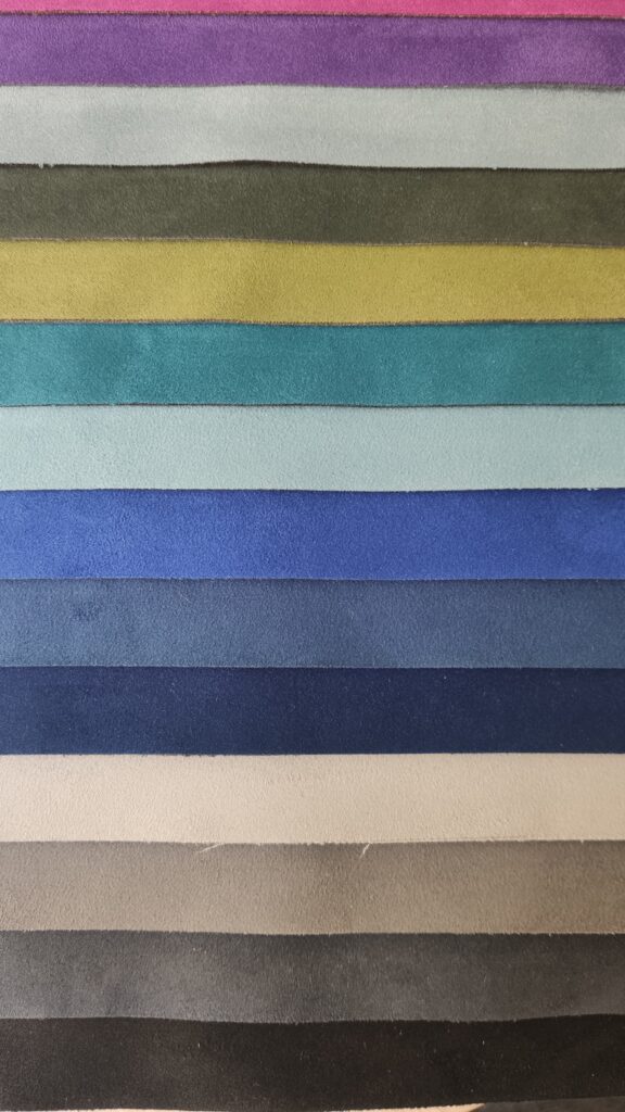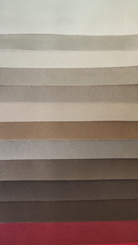 Υψηλής ποιότητας ιταλικό δέρμα (pelle smerigliata). Πολύ ανθεκτικό, κομψό και απαλό στην αφή, εύκολο να καθαριστεί. Πάχος 0,7 – 0,9 mm. Το κύριο χαρακτηριστικό του είναι η ελαφρότητα του και η χαρακτηριστική απαλή αίσθηση αφής, ως αποτέλεσμα της βαφής με φυσικές ανιλίνες και της διαδικασίας τελικού φινιρίσματος με νερό. Η συγκεκριμένη διαδικασία διενεργείται με πλήρη σεβασμό στον άνθρωπο και το περιβάλλον.
