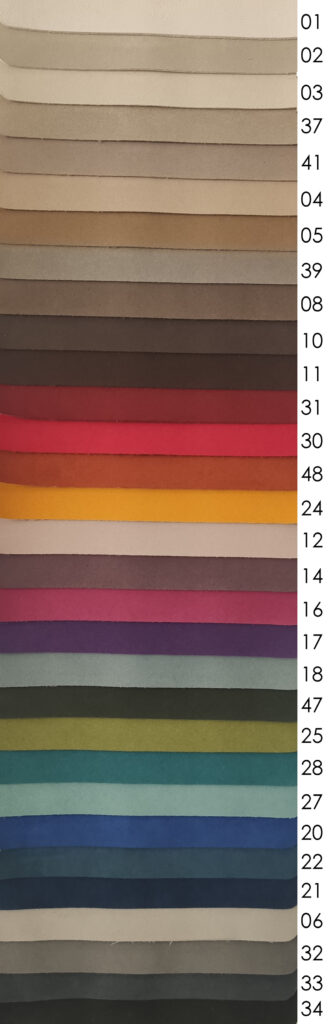 Βελουδινη επιφάνεια τυπου Nabuck για πολύ ευχάριστο και απαλό άγγιγμα, παχους 1.2 – 1,4 χιλιοστά, τιμή +40%. Ο τύπος δέρματος MAYA αντικατοπτρίζει την ήδη εφαρμοσμένη στους κύκλους της μόδας τάση που συνδυάζει τις σύγχρονες στιλιστικές ανάγκες με το vintage παλαιωμένο στυλ και μοιάζει σαν ένα παλιό, μαλακό τζιν που φοράμε άνετα σε οποιαδήποτε περίσταση. Η απαλή υφή του υφάσματος επιτυγχάνεται μέσω ειδικής επεξεργασίας που κάνει το δέρμα ενισχυμένο, με μία πολύ φυσική κομψή εμφάνιση. Με φινίρισμα βασισμένο σε κερί και ανιλίνες που εφαρμόζονται στις γραμμές και περαιτέρω επεξεργασία με ελαφριά τριβή, καταφέρνουμε να αποκτήσουμε αυτή τη χαρακτηριστική όψη φθαρμένου και την ευχάριστη αίσθηση βελούδου στην αφή, που ταιριάζει απόλυτα στις γραμμές του καναπέ σας, σαν ένα μαλακό, παλιό, ζεστό ρούχο. Το τελικό βήμα επεξεργασίας είναι μια διαδικασία που ονομάζεται Idra και κάνει την επιφάνεια του προϊόντος ελαφρώς προστατευμένη. Το δέρμα MAYA χάρη στην απαλότητά του, τη βελούδινη υφή και το vintage στυλ του ντύνει ιδανικά κάθε μοντέλο καναπέ, από κλασικές γραμμές έως μοντέρνου σχεδιασμού έπιπλα. Χρησιμοποιείται επίσης στη δημιουργία τσαντών και αξεσουάρ. Η γκάμα χρωμάτων έχει επιλεγεί προσεκτικά έτσι ώστε να συνδυάσει τη ΝΕΑ ΕΠΟΧΗ με πολλά διαφορετικά στυλ και έχοντας ως στόχο να κατανοήσει και να ικανοποιήσει με τον καλύτερο δυνατό τρόπο την ολοένα και πιο επιλεκτική αισθητική των πελατών μας.
