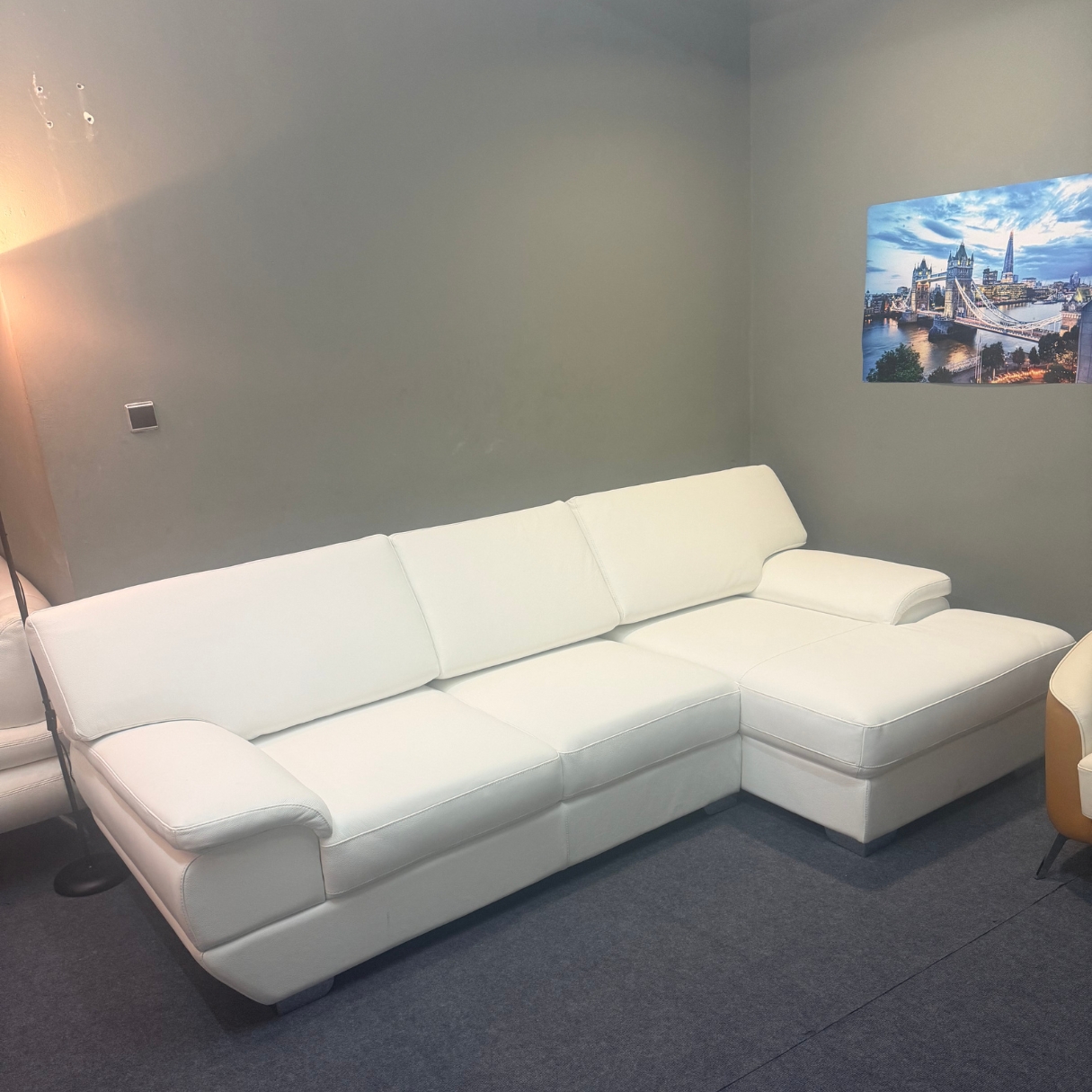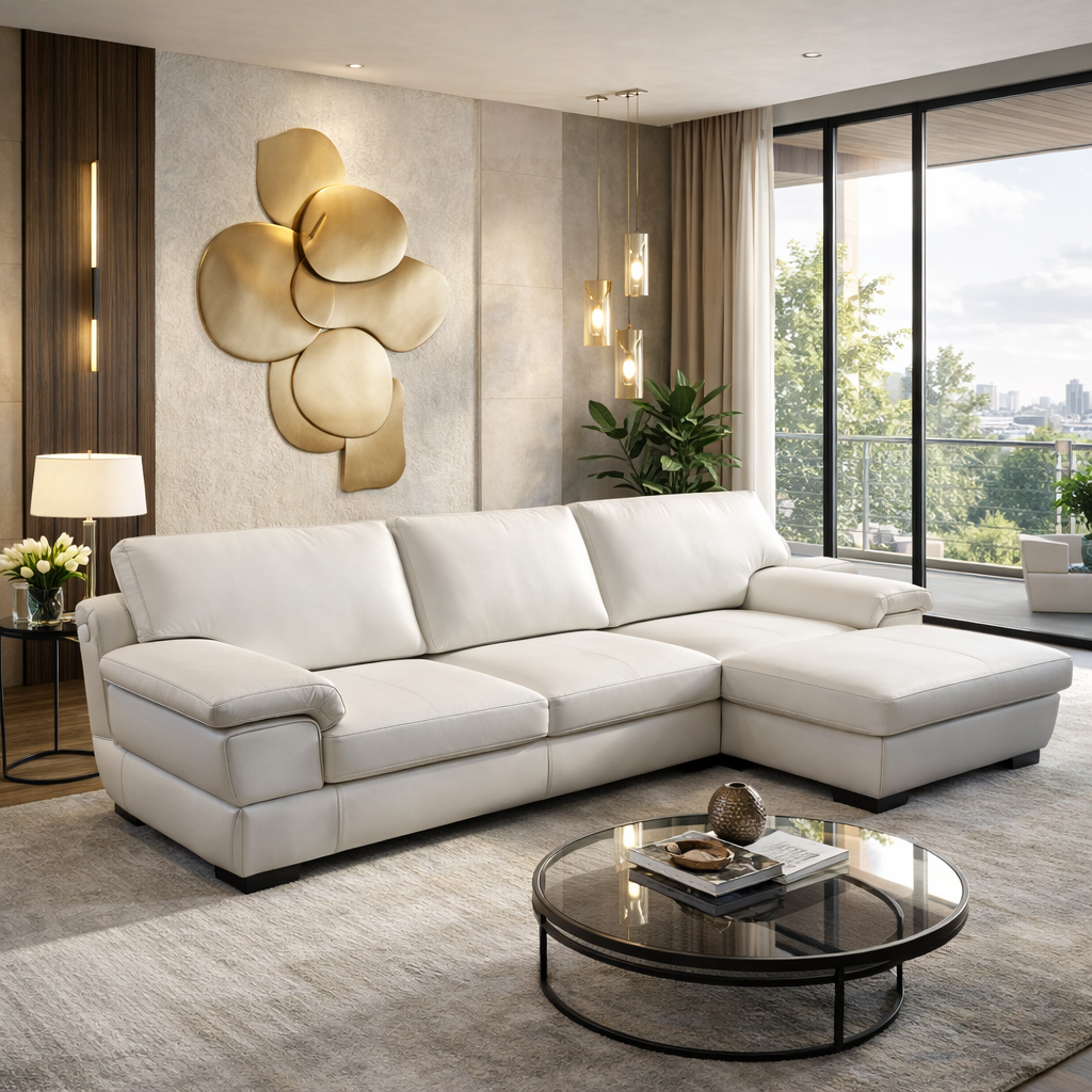 Πολυτελής Γωνιακός Καναπές Party. Ο απόλυτος συνδυασμός επιβλητικής παρουσίας και διαχρονικής άνεσης. Με συνολικό πλάτος 300 εκ. και ένα ευρύχωρο chaise lounge βάθους 180 εκ., ο καναπές αυτός προσφέρει μια σταθερή και αναπαυτική εμπειρία καθίσματος. Ο λιτός, μοντέρνος σχεδιασμός του και η στιβαρή κατασκευή του τον καθιστούν την ιδανική επιλογή για σύγχρονους χώρους που δίνουν έμφαση στην ποιότητα και την αισθητική καθαρότητα.