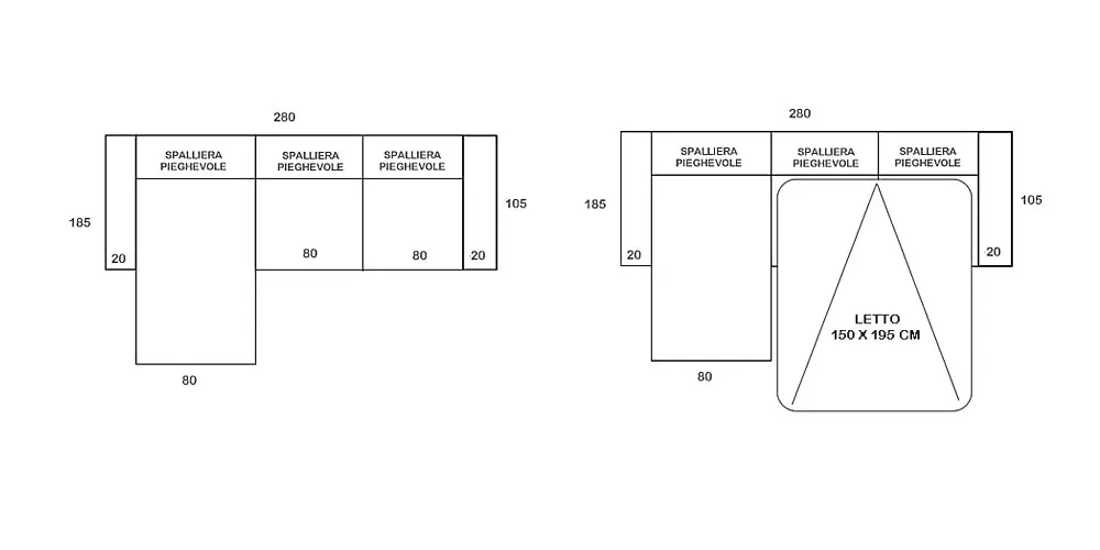 Συνολικό ύψος καναπέ: ανοιχτή πλάτη 100 cm, κλειστή πλάτη 80 cm