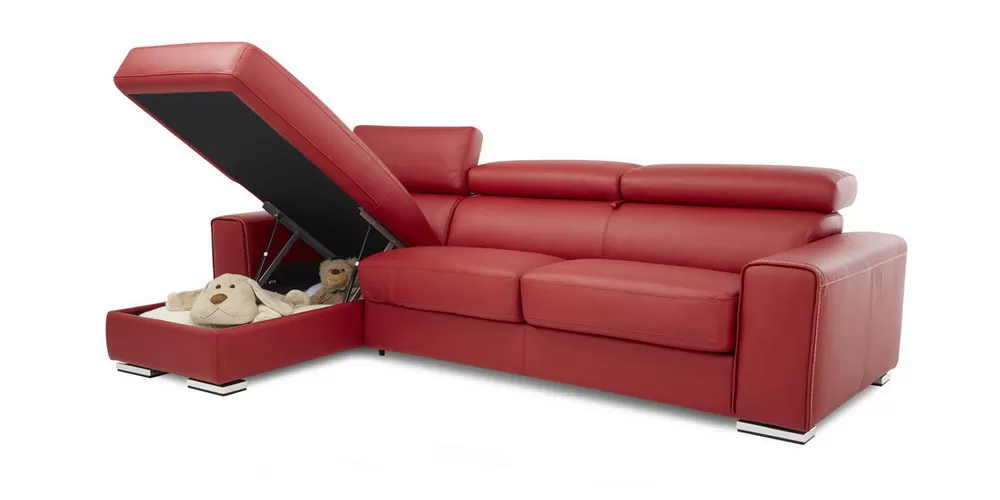 Εξαιρετικός δερμάτινος γωνιακός καναπές με χώρο αποθήκευσης αλλά και ορθοπεδικό κρεβάτι.