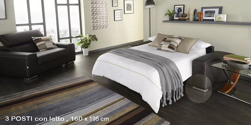 Το σαλόνι διαθέτει χρήσιμο και ευρύχωρο αποθηκευτικό χώρο (70 x 155 cm). Μέγεθος κρεβατιού: 150 x 195 cm. Ύψος στρώματος: 14 cm.