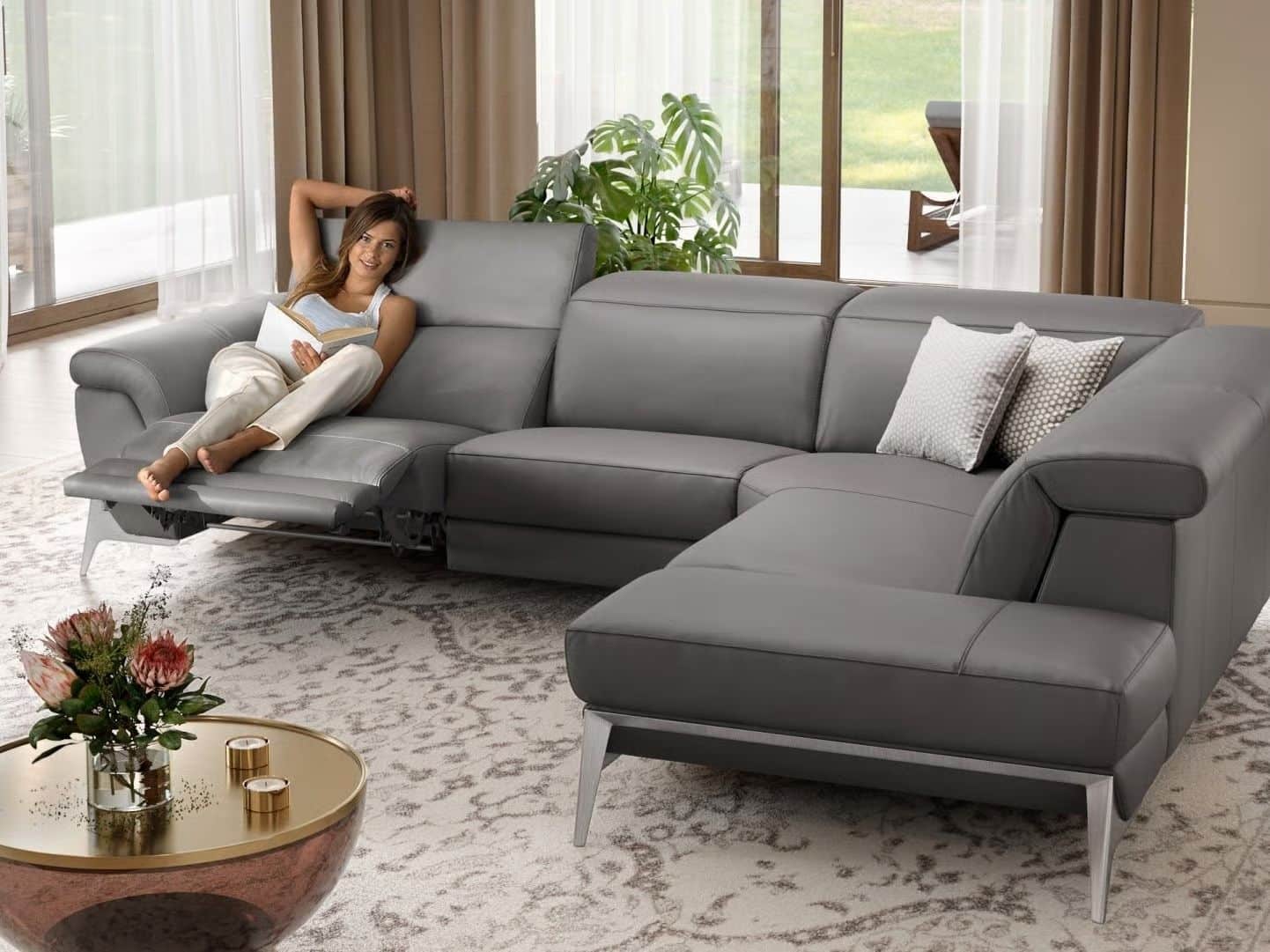 Ο Pantrepsou Me είναι ένας εντυπωσιακός γωνιακός καναπές τύπου relax που εξοπλίζεται με ανακλινόμενες πλάτες (“foldable backs”) και ασύρματο ηλεκτρικό μηχανισμό. Προσφέρει την απόλυτη εμπειρία χαλάρωσης με στιλ, ενώ τα πολυτελή μεταλλικά πόδια από γυαλισμένο ανοξείδωτο ατσάλι τον καθιστούν ιδανική επιλογή για φιλόξενους και οικογενειακούς χώρους.